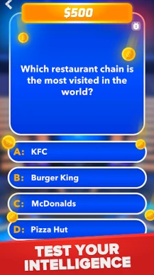 This game starts with easy questions and with each new level you move on to more difficult ones. The more erudite you are and answer correctly, the more in-game money you get. Only 15 levels, the last prize is a million!