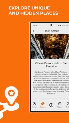 Collect THANKS tokens at each stop on your itinerary and when you make a purchase. Use the THANKS collected to get fantastic content and audio about the city, discovering interesting curiosities and secrets that only true locals know.